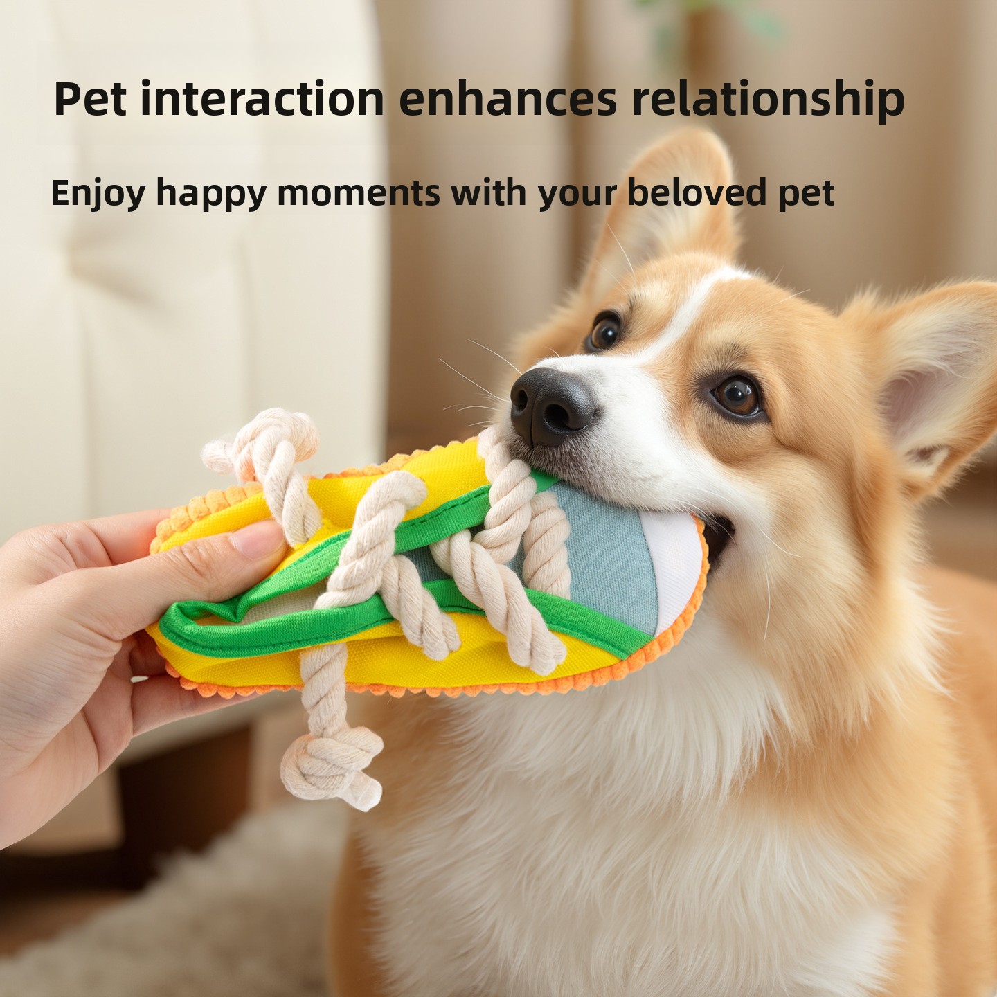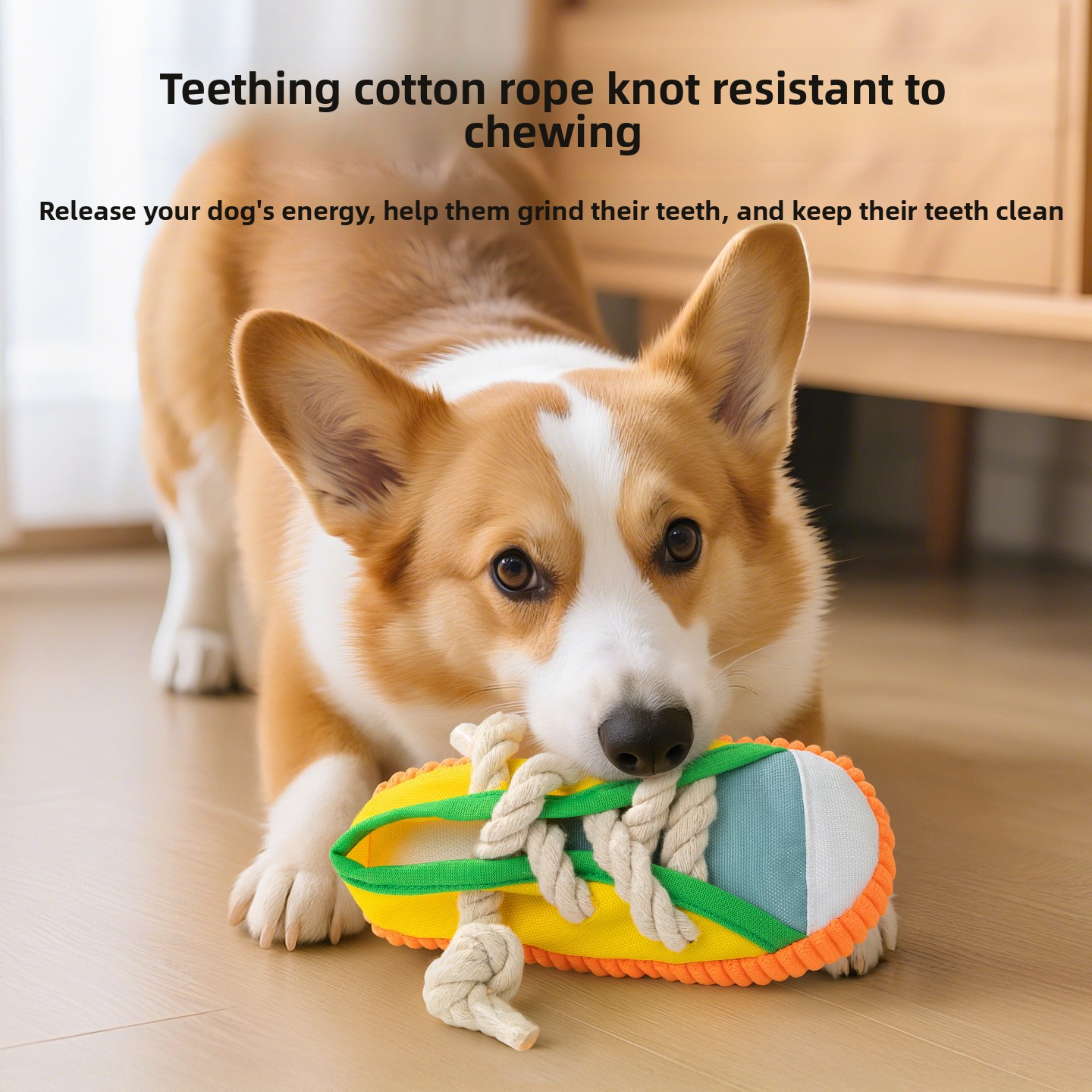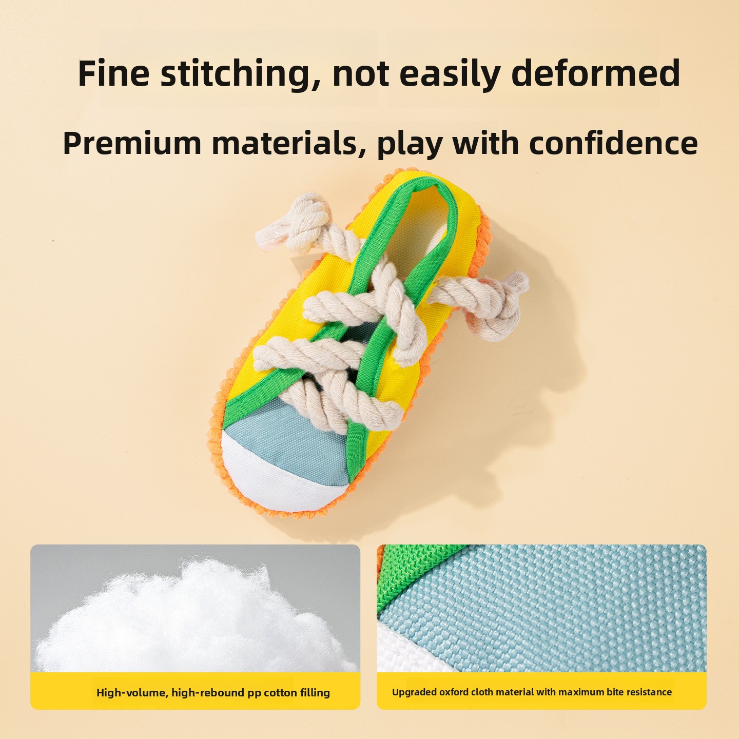 Fabricado com tecido resistente e cordas grossas, o brinquedo foi pensado para aguentar mordidas e puxões moderados, sendo ideal para uso frequente em casa ou ao ar livre.